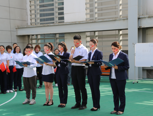活動(dòng)中集團(tuán)機(jī)關(guān)團(tuán)支部青年團(tuán)員代表在國(guó)旗下深情朗誦詩(shī)歌《祖國(guó)頌 》,用飽含深情、鏗鏘有力的詩(shī)歌抒發(fā)對(duì)公司的感恩,青年團(tuán)員在未來(lái)艱苦奮斗、不忘初心的決心,更表達(dá)了對(duì)祖國(guó)的熱愛(ài)和祝福。《我和我的祖國(guó)》音樂(lè)聲響起,參加活動(dòng)的全體干部員工共同放聲高歌。