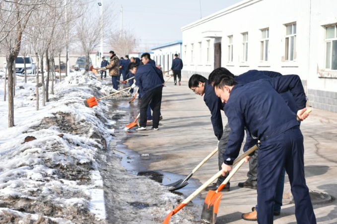 下午16點(diǎn)整,準(zhǔn)東供水公司基地各部門(mén)職工在大門(mén)口整齊列隊(duì),鮮艷的黨旗、團(tuán)旗在和煦的春風(fēng)中飄揚(yáng)。公司黨總支帶領(lǐng)黨員、青年、團(tuán)員準(zhǔn)備好工器具,對(duì)停車場(chǎng)、綠化帶兩邊、戶外籃球場(chǎng)、宿舍門(mén)前道路、路沿石上的積冰積雪進(jìn)行徹底清掃,對(duì)職工文體活動(dòng)中心進(jìn)行衛(wèi)生清潔。
