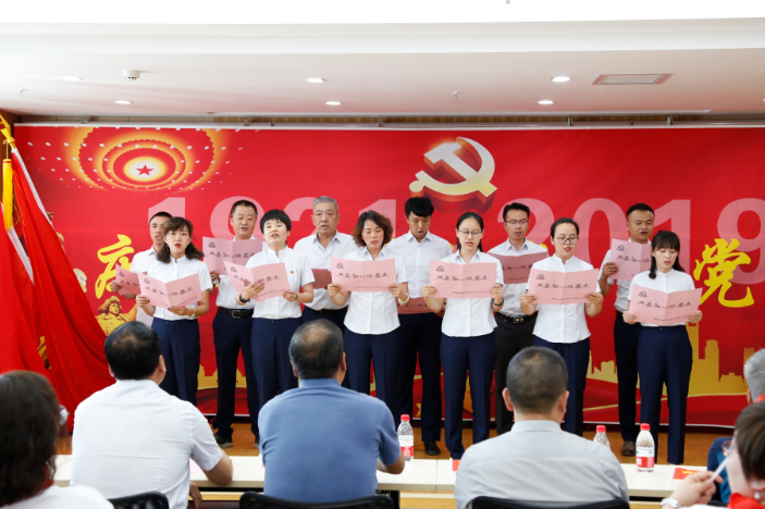 活動第一項,全體員工一同奏唱國歌,這一中國人心中最激昂的旋律,穿越時空,延續著我們中華民族的偉大傳統,凝聚著新中國的豪情壯志。接著,全體黨員共同重溫入黨誓詞,不忘初心,牢記使命。