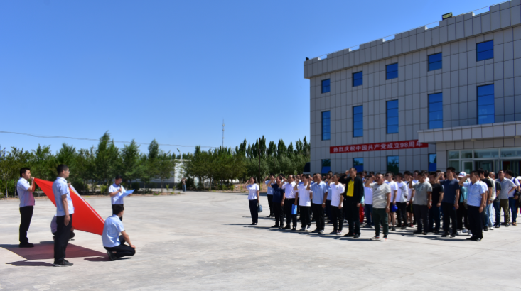 上午十二時(shí),活動(dòng)全體參與人員在國(guó)旗下莊嚴(yán)肅立,由三名升旗手護(hù)送的五星紅旗在洪亮的國(guó)歌聲中冉冉升起;隨后,準(zhǔn)東供水公司黨總支書記楊杰成同志帶領(lǐng)全體黨員,面向黨旗莊嚴(yán)宣誓。