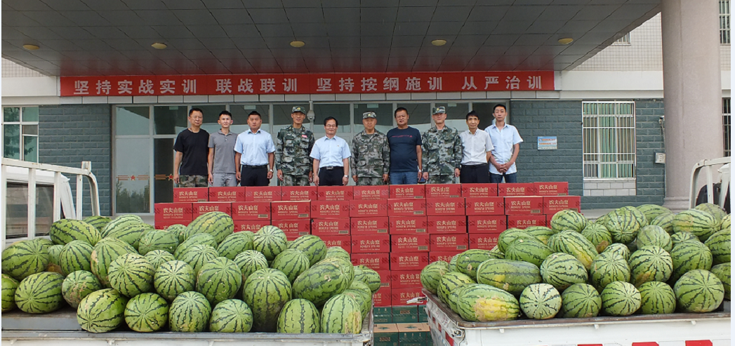 7月31日上午,在“八一”建軍節(jié)來臨之際,庫爾勒銀泉供水有限公司領(lǐng)導(dǎo)一行來到解放軍69089部隊慰問,為駐地部隊和官兵送上西瓜、礦泉水,并向他們致以美好的問候和節(jié)日的祝福。