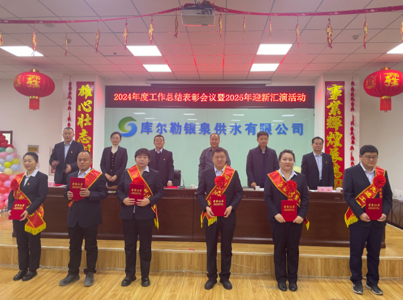 2025年1月21日上午,庫爾勒銀泉供水有限公司組織全體干部職工在七樓會議室開展2024年工作總結表彰會議暨2025年迎新匯演活動,昌源集團黨委副書記、副總經理、總會計師獨文輝、城建集團黨委副書記、副總經理張帆、城建集團黨委委員、財務總監黃陶出席本次活動。